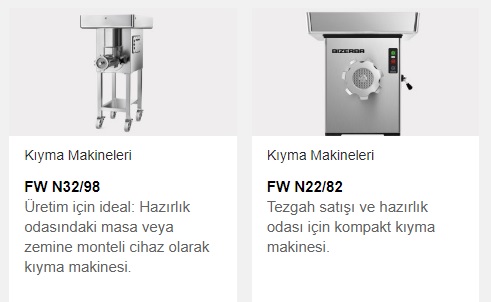 Bizerba kıyma makineleri, satış tezgahına, mutfaklara veya hazırlık odalarına kurmak için uygundur. Küçük ve orta büyüklükteki tüm et çeşitleri ve sebzeleri kolayca öğütülür. Gıda işleyicileri mükemmel sonuçlar elde ederek ekipmanları kolayca da temizleyebilirler.