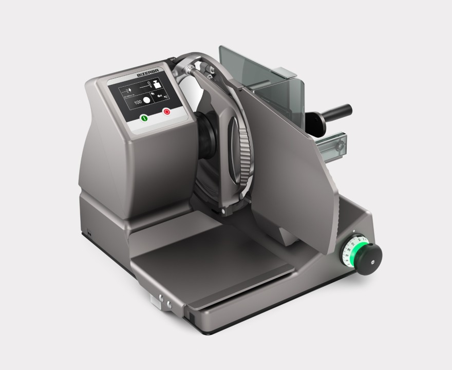 VS dikey dilimleme makineleri, hassas dilimlemeler için isteğe bağlı ölçek bağlantısı ile sunulur. Alçak yapının avantajları: Kızağın ergonomik ve kolay kullanımı ve müşteri ile göz temasının sürmesi.